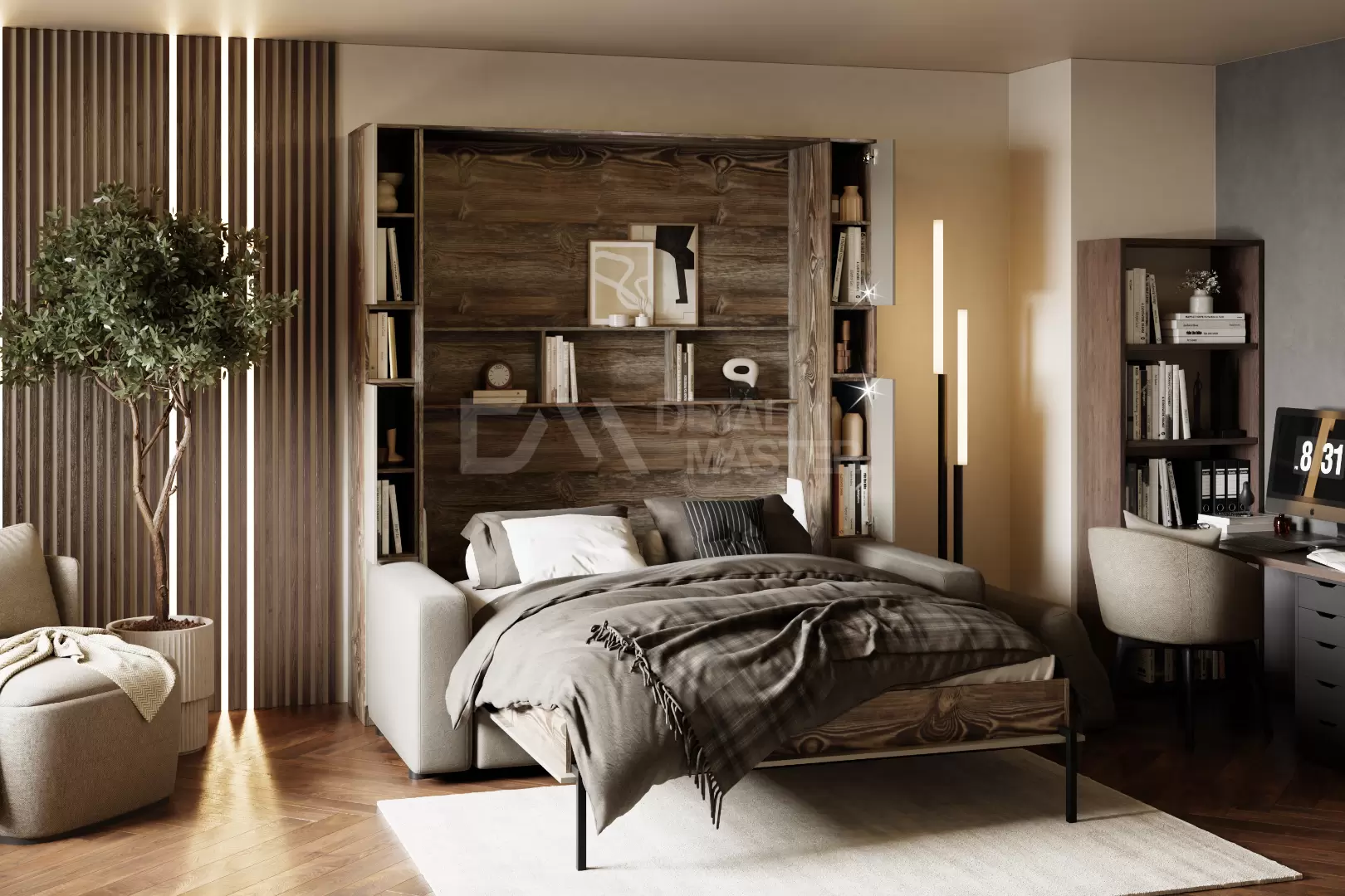 • Корпус и фасад шкаф-кровати, выполненный из ЛДСП;